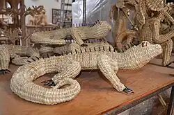 When Don Vasco, the archbishop of Michoacan, was teaching villagers to specialize in trades some 300 years ago, he taught the natives of Ihuatzio to weave reeds, with the practical goal of fashioning baskets, chairs, and stools. Today, reed weaving continues to be practiced in the local community where some of the most popular works are fanciful sculptures of animals and mythical creatures, some of whom are worked into practical objects, such as an elephant supporting a coffee table on its back, or monkeys dangling a ceiling lamp. The reed sculptures are sold in marketplaces throughout the region, but if you're in Ihuatzio you can stop by Taller Tzumindi or one of the other workshops and watch the craftsmen at work.