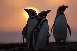 Aquatic birds are the most numerous type of animals in the park with seagulls and similar birds circling over the islands. Colonies of penguins live on some of the islets, as well as on rocky parts of the mainland. Islote Lobos is the world's northernmost colony of Magellanic penguins. A number of coastal birds live in the park where they nest on the semi-protected promontories and on seaside cliffs and inland areas. These include endangered species like the giant petrel, southern flamingo, southern two-band plover, and the red knot. The birds come to feed in the tidal pools that are formed as the waters recede at low tide, exposing a wealth of small crustaceans, mollusks and other food sources.