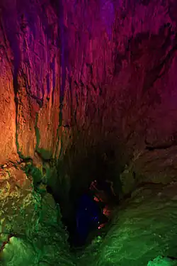- 🌍 Ryusendo Cave (龍泉洞), 岩手県下閉伊郡岩泉町岩泉字神成1番地1 (From Misawa, take the Momoishi toll road to Hachinohe, and follow Route 45 to the T-Intersection at the Sega World. Make a right and continue on 45 about 85 km until you get to Route 455. Turn right onto Route 455 and follow it about 17 km to the caves.), ☏ +81 194 22-2566. October–April 08:30-17:00, May-Sep 08:30-18:00. A Japanese national monument and one of three largest caves in Japan. Adults \1100.