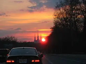 Despite being so easy to see from the Beltway, the Mormon Temple is somewhat difficult to find because there is no direct way to get there from a Beltway exit. The easiest and most navigable path is to take Connecticut Avenue to Beach Drive eastbound and, when it ends, make a left turn on Stoneybrook Drive.