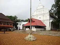 - 🌍 St. George's Church (In nearby town of Kadamattom). Built in 6th century AD. This Malankara Orthodox Syrian Church church is famous for its rare combination of Indo-Persian architecture coupled with Kerala Hindu style decors and mandapams. The Church has its origins from a Hindu Brahmin family who converted to Christianity, yet maintained their Hindu tantric beliefs and practices. Thus many of its customs are mixture of Christianity and Hinduism. The Church is extremely famous for its legendary Kadamattom Kattanar (Priest) who lived in 10th century AD here, following Hindu Tantric practices to cure those who possessed as well as quell ghosts and spirits. Many Hindu temples were established by the Kadamattom Kattanar nearby, highlighting the level of harmony between Christianity and Hinduism in Kerala. Even today, people irrespective of religions, visit the shrine to seek blessings of the Kattanar. The Holy cross of St.Thomas kept here, was gifted by St.Thomas to an Assyrian King before coming to Kerala, which was brought by first Immigrants from Syria after the fall of Babylon.