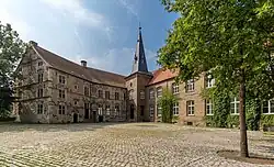 - 🌍 Kakesbeck Castle (Burg Kakesbeck), Bechtrup 63 (5.5 km north of town via Hiddingseler Straße). Visits of the castle's interior are possible by appointment only. Yet another water castle, in the village of Elvert that has been merged into the municipality of Lüdinghausen.