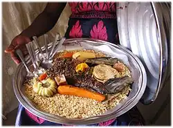 Ceeb-u Jen, also spelled chebu jen, thieboudienne or just tiep