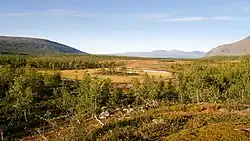 - Lake Guvtjávrre by the Nordkalottleden trail, with view to the Áhkká massif. A meeting place for Sámi, with possibility to buy bread and fish with some luck.