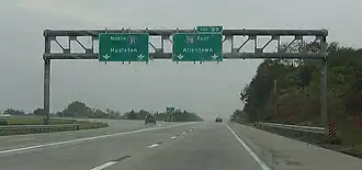 - Interstate 78, a major east-west highway that runs from central Pennsylvania in the west to the Holland Tunnel and Manhattan in the east. Lehigh Valley exits from I-78 include exits 57, 58, and 59.