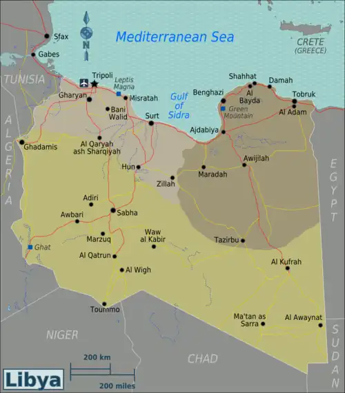 | Cyrenaica (Benghazi, Shahhat, Tobruk) The north-eastern region on the Mediterranean Sea. |