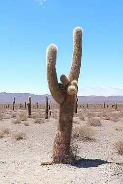 Los Cardones National Park is a protected natural area of arid, semi-desert mountains in the Andean Northwest of Argentina. The park is famous for its tall, stout cactus, the cardon grande, also known as the Argentinian saguaro. The park was named for the photogenic cactus, which grows throughout the park. Paleontologists might want to visit to search for dinosaur remains or to view prehistoric fossils that are well preserved in the park's dry climate.
