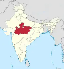 Madhya Pradesh (MP, Hindi: मध्य प्रदेश Madhya Pradeś) is a state in the plains of India. The name "Madhya Pradesh" means "central region", and derives from its geographical position. It is one of the few states of India that is completely surrounded by other states, having neither a border with another country nor a coastline. To its north is Uttar Pradesh. To its west lie Rajasthan and Gujarat, to its south is Maharashtra and to its east is Chhattisgarh, a state that used to be a part of MP till 2000.