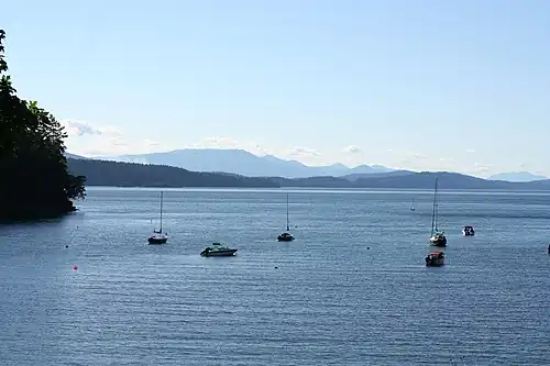 Nearby Active Pass still throbs with a steady stream of marine traffic, a bustling contrast to the island's quiet interior byways. Village Bay, with its BC Ferries terminal, has several late 19th-century to 1930s buildings. Active Pass is named after the American survey ship USCS Active, the first steam vessel to navigate the pass.