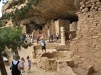- 🌍 Cliff Palace (Chapin Mesa). early-April through early-November. Tour starts at the Cliff Palace overlook on the Cliff Palace Loop Road. This one-hour tour descends 100 feet to Mesa Verde's largest and most famous cliff house. Along the way you must climb five 8–10 ft ladders. $5.