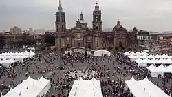 - 🌍 Catedral Metropolitana de México (Metropolitan Cathedral) (north side of the Zócalo). Daily 07:00-19:00. The largest cathedral in the American continent. Designed by Claudio de Arcinieaga, construction started in 1537 and lasted for 250 years. Be sure to check out the side chapels where parishioners leave offerings for the various saints. For a bird's-eye view of the plaza, you can take a 40-minute tour (Spanish language only) of the upper levels and bell towers of the cathedral (M$12). Free.