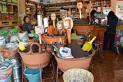 There are more than 20 mole shops in the town of San Pedro Actopan alone, and many dozens more throughout Milpa Alta. Prepared moles are sold in jars (or buckets) and include well-known types like mole poblano, mole oaxequena or many other types. Mole is also sold in powdered form in a wide range of colors and flavors. The people in the mole stores are friendly and very helpful, but most speak only Spanish or Nahuatl.