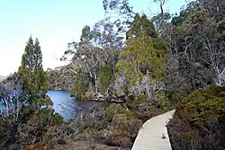 - 🌍 Lake Dobson. Follow Lake Dobson Rd as it climbs 800 metres up, and walk the Lake Dobson circuit. A short walk by a charming lake, with some magnificent views of Mt Field, and, perhaps, some snow.