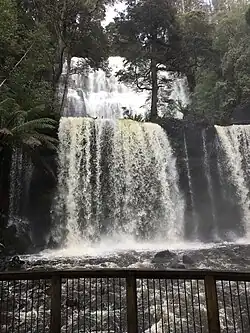 - 🌍 Russell Falls, Russel Falls Nature Walk, Russel Falls. A three tier waterfall, one of the few waterfalls anywhere in Tasmania that have that sort of effect, with an easily accessible lookout where eventually the waterfall will flow underneath that lookout.