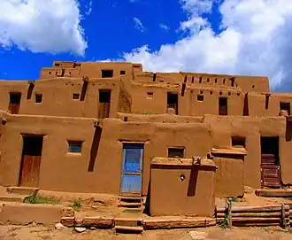 - 🌍 Taos Pueblo (just north of Taos on Paseo del Pueblo Norte), ☏ +1 575 758-1028. M-Sa 8AM-4PM, Su 8:30AM-4PM. The pueblo closes late winter to early spring for about ten weeks for tribal rituals. $10 per adult, $5 per student, children under 13 free. Photography and filming allowed; $5 fee. Professional and commercial photographers and artists must apply for a permit beforehand. It is just outside the town of Taos and is the only pueblo which is also on the UNESCO World Heritage List. Taos is one of the most popular pueblos for tourists due to its strikingly well-preserved multi-story village which looks much the same as it has for hundreds of years. In fact, Taos is one of the oldest continuously inhabited communities in the United States (some say the oldest, a title which is also claimed by Hopi Pueblo in Arizona and Acoma Pueblo). The San Geronimo Feast Day is held on September 30.