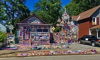 - π Prophet Isaiah's Second Coming House, 1308 Ontario Ave. This off-the-beaten-path local landmark was the brainchild of Isaiah Robertson, a Jamaican-born house flipper who, so the story goes, had a religious vision wherein God told him that the end of the world would happen in Niagara Falls in 2014, and that he was to take his house and decorate it as garishly as possible with colorful wooden trinkets so that anyone who passed by would be so impressed and inspired that they'd be saved. The centerpiece of the decor scheme is the cross to the east of the house, which stands 25 feet tall, supposedly the same height Christ would be at the Second Coming. Undeterred by the fact that 2014 came and went without any such happening, Robertson continued his work until shortly before his death in January 2020.