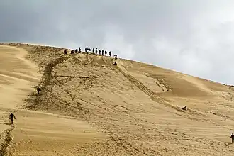 Ninety Mile Beach is a long beach (actually 58 miles or 93 km long) in the Far Far North of New Zealand. Legally a road, it is used for sightseeing trips to Cape Reinga, and the high dunes at Te Paki are used for sandboarding.
