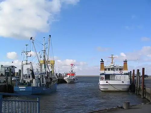 - The port of Strucklahnungshörn on the northwestern shore of the island on the Wadden Sea stream Fuhle Schlot is primarily reserved for the island ferry to Pellworm that runs from here, and for seaside resort shipping to the Halligen Hooge and the municipality of Nordstrandischmoor.