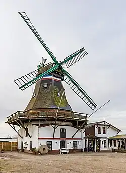 - 🌍 windmill Engel, Süderhafen 15, 25845 Nordstrand. Built in 1889, the Dutch windmill was in operation as a windmill until 1942. A storm on 23 December 1954 threw off the cap and wind rose and sealed them with a flat roof. It remained in operation until 1970. In 1970, the café "Glück zu" was set up in the mill house. The mill was restored at great expense in the following years, and on September 11, 1982, the "maiden race" could begin.