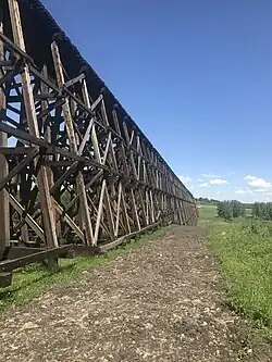 The Rochfort Trestle Bridge, SE of Mayerthorpe, is one of North Americaβs longest wooden train trestles.