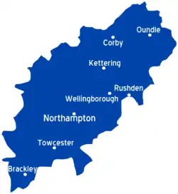 Traditionally, the town of Northampton has been a major centre of shoemaking and other leather related industries. Shoemaking has virtually ceased, though the back streets of the town still show the pattern of small shoe factories surrounded by terraced houses for the outworkers. The main industries now include distribution and finance.