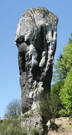 - 🌍 Pochylec (near intersection of road 773 and Ojców road). Limestone rock tower inclined at significant angle. One of toughest climbs in Poland, small wooden platform and a toilet are located at start.