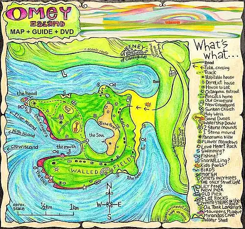 - Omey Island Map + Guide + DVD, by Sean Corcoran, may be available in Clifden bookshop; it's not available on Amazon.