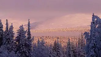 Pallas-Yllästunturi National Park is Finland's most visited national park, on the border between Forest-Lapland and Fell-Lapland in Finnish Lapland. The park lies in the municipalities of Enontekiö, Kittilä, Kolari, and Muonio. With an area of 1,020 km2 (390 sq mi) the park is third in size in Finland. It has around 350 km (220 miles) of marked hiking trails and 500 km of cross-country skiing trails. It is the most visited national park in Finnish Lapland. Services, such as meals in the terrain, are available in a larger extent than in most Finnish national parks.
