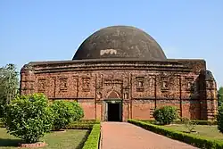 - π Eklakhi Mausoleum. Eklakhi Tomb or Mausoleum houses constructed by Sultan Jalaluddin Mohammad Shah in around 1425 at a cost of rupees one lakh (hundred thousand) and hence the name. Jalaluddin Mohammad Shah was born as Jadu, son of King Ganesh and later converted to Islam. He ruled Bengal Sultanate for 16 years. The square tomb with sides of 75 ft (23 m) is topped with a dome and houses three graves, including that of Jalaluddin Mohammad Shah. The other two graves are of his wife and son Shamsuddin Ahmed Shah. The corners are provided with minarets, whose cupolas have long collapsed. The walls of the mosque are 13 feet thick and the interior is octagonal and supports a dome of 14 ft (4.3 m) in diameter. The total height of the structure is 75 meters. The walls have rich terracotta ornamentation of decorative bricks. There are also images of Hindu gods and other human figures suggesting materials from Hindu temples were used in the construction of the tomb.