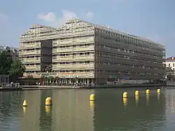 - 🌍 Holiday Inn Express Canal d'Ourq (Métro Crimée). A quite unusually interesting Holiday Inn Express, sharing the building facing the Bassin de La Villette with St. Christopher's Inn. Some rooms have terraces with views of the bassin.