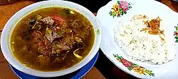 - 🌍 Nasi Megono RM Tjukup, Jl. Manggis sebelah PLN Pekalongan No.10, Sampangan, East Pekalongan, ☏ +62 877 567 77798. 7AM-4PM. Nasi megono is a typical rice dish of Pekalongan Regency made from pieces of young jackfruit with a blend of grated coconut. It is usually served with mendoan, black cooked squid, balado egg, tempeh orek, cucumber, and chili sauce.