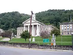 Pineville sits alongside the Guyandotte River and has a cute, neat downtown area with a large stone courthouse sitting on a hill above the river. Originally called Castle Rock, the eponymous Castle Rock still stands alongside the Guyandotte River. Pineville is one of two sizable towns with services, groceries and restaurants near Twin Falls Resort State Park, the other being nearby Mullens.