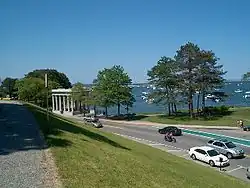 - π Plymouth Rock and Pilgrim Memorial State Park, Water St, β +1 508 747-5360. Always available. Pilgrim Memorial State Park commemorates the landing site of the Pilgrims in 1620 and contains several historical monuments, a craft shop run by Plimoth Plantation, and the portico enshrining Plymouth Rock. Locals will roll their eyes if you express disappointment with the fact that Plymouth Rock is, in fact, just a rock. "What did you expect?" is the reaction you are likely to receive. To be fair, the rock is small, with the year "1620" engraved on it as its only decoration. The rock was once much larger, weighing over 20,000 lb (9,100 kg). It was displayed at several different locations in town over several hundred years, but was broken in half by transport and several large pieces of it were taken or sold. A 40-lb. piece resides in the Plymouth Church of the Pilgrims in Brooklyn Heights, New York. Smaller pieces were reportedly chipped off and stolen as "souvenirs." The surviving Plymouth Rock is only 1/3 of the upper half of the original stone, so keep that in mind before passing judgement.