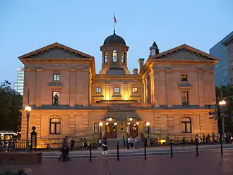 - π Pioneer Courthouse Square, SW Broadway and Yamhill, β +1 503-223-1613. This is the central courtyard of downtown Portland, a big gathering spot that's popular with tourists and locals alike. Notable features of the park are a cascading waterfall fountain, chess boards, and the Weather Machine, a machine that predicts the weather every day at noon. Many other sculptures and art elements surround the square, including Kvinneakt, the bronze statue of a nude woman that's otherwise known as the "Expose Yourself to Art" statue after a popular poster featuring a flasher (former Mayor Bud Clark) facing this work. An annual Christmas tree lighting ceremony takes place here the Friday evening after Thanksgiving to ring in the holiday day season and get everyone attending into the holiday cheer. Free.