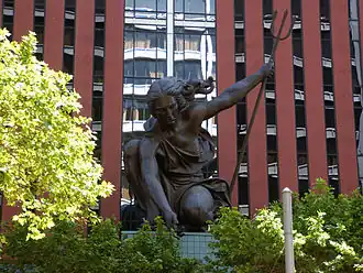 - π Portlandia, 1120 SW 5th Ave (W side of Portland Building). Looming over the west entrance of the Portland Building is the second-largest hammered-copper statue in the U.S. (after the Statue of Liberty); a classical sculpture of a woman bearing a trident, crouching over the entryway and reaching down to welcome visitors. For its sheer size, it's surprisingly easy to miss - keep your eyes peeled for Michael Graves' historic postmodern building painted in red, blue, and tan.