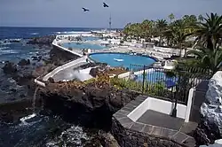 - 🌍 Lago Martiánez, Avda de Cristóbal Colón, s/n, ☏ +34 922 385 955. 10:00–19:00 (closes 18:00 in winter). A fantastic, post-modern swimming and sunbathing complex designed by the famous Lanzaroteno architect Cesar Manrique. It's a bit concretey by modern standards but is still an awesome paradise which costs hardly anything to enter for the day. See inoffical website for more information. Adult €5.50, child under 10 €2.50; price includes sunbeds.