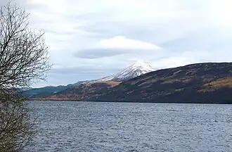 - π Schiehallion is the area's signature ascent, the Fuji-like conical Munro of 1083 m (3553 ft). The usual route is from Braes of Foss along the lane from Aberfeldy.