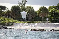 - 🌍 Peanut Island (east of the Marina Village and Port of Palm Beach in the middle of Lake Worth Lagoon), ☏ +1 561-777-0438. Water taxis every 25 minutes, 10AM-5PM (last boat to the island 3:30PM). The county-run Peanut Island Park is an extremely popular destination for day trips. On busy weekend, expect to see the waters surrounding the island absolutely packed with small boats, which drop anchor in the lagoon as a base for drinking while their passengers swim or kayak to the island's shores. Snorkeling is extremely popular, as are kayaking and paddlebarding to the island (the only way to avoid the hefty water taxi charge). The island is home to a historic Coast Guard station and the bunker where President John F. Kennedy hid out during the Cuban Missile Crisis; unfortunately, the bunker ended public tours in 2017 and has fallen into disrepair. Anyone can paddle, kayak, or take their own boat to the island, but the rest of us need to book a water taxi from the marina. All tickets are good for round-trip, same-day passage. Camping is permitted in designated campgrounds by reservation only; if you want the water taxi to shuttle your gear, you'll need to arrange it in advance (they also rent tents and a limited selection of other necessities). The water taxi will not sail when there's a lightning or other small craft warning, but even on bad-weather days, the forecast may turn around within an hour or two. Water taxi ticket $12 per adult, $6 per child under 6.