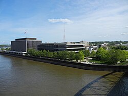 From Davenport the Centennial Bridge, which carries US Route 67 traffic, is the typical way into the city on the west side of downtown. The Government Bridge on the east side of downtown is also an entry point, however the bridge sets low above the water and has a swing-span to allow barge and other river traffic to pass through. This will cause delays.