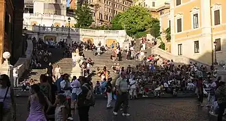- π The Spanish Steps (Scalinata di Spagna). A truly monumental stairway of 135 steps (similar to climbing eight flights of stairs), built with French funds between 1721 and 1725 in order to link the Bourbon Spanish embassy to the Holy See (still located in the piazza below), with the Bourbon French church (its monastery founded in 1495) above. Don't sit on them though, or eat, or push a baby stroller on them, or do anything else that might obstruct pedestrians, make them dirty, or cause additional wear and tear, or else you will have to pay a fine that ranges from β¬250 to β¬400. Free.