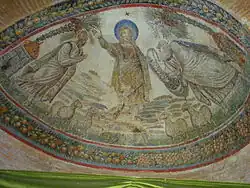 - π Sant' Agnese fuori le Mura (Saint Agnes outside the walls, not to be confused with Sant' Agnese in Agone, to be found in Piazza Navona), Via Nomentana 349. 09:00-13:00 and 16:00-18:00. This church was built next to the mausoleum of Santa Costanza in the 7th Century and is on top of catacombs. It is very unusual in that the floor level is at the level of the catacomb floor, and the street entrance is at the level of the second floor gallery. The body of St. Agnes lies in a silver sarcophagus. There are several stories about her death at the age of 13 in 304 AD. One is that the prefect Sempronius wanted her to marry his son, and condemned her to death when she refused. Roman law did not permit the execution of virgins, so he ordered her to be raped but her virginity was miraculously preserved. She was then condemned to be burnt at the stake but the wood would not burn. Another is that she was stripped naked by the Emperor Diocletian because of her refusal to marry but that her hair then grew rapidly to preserve her modesty.