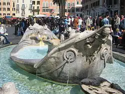 - π Piazza di Spagna (Metro Spagna, bus nr 116,117,119). The Piazza di Spagna (Spanish Square) is the most famous square in Rome. For a very long time it was the meeting point of all foreigners coming to Rome. In the 17th century it was the residence of the Spanish Ambassador to the Holy See. The area around the residence was Spanish territory and foreigners who stayed here without permission were forced to serve in the Spanish army. The Fontana della Barcaccia (Old Boat Fountain) on Piazza di Spagna was designed and built in 1627-29 by Pietro Bernini, father of the more famous Gian Lorenzo Bernini. The fountain celebrates the fact that before high walls were built along the banks of the Tiber Rome often used to flood. Once the waters were so high that a boat ended up in the square. The decorations on the fountain imitate the coat of arms of Pope Urban VII, Barberini'p, who ordered the fountain to be built. A less aesthetic occupant of the square is Italy's first McDonalds, dating back to 1986. Also in the piazza is a column erected in 1856 to commemorate the Immaculate Conception. The column is topped by a statue of the Virgin Mary, and rests on a base with statues of Moses, David, Isaiah and Ezekiel. The Pope visits the Piazza every year on December 8th to celebrate Immaculate Conception.