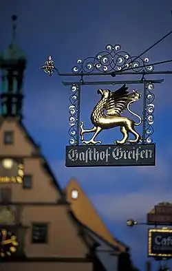 - 🌍 Gasthof Goldener Greifen, Obere Schmiedgasse 5 (just south of Marktplatz), ☏ +49 9861 2281. Former home of mayor (Bürgermeister) Toppler (~1406).