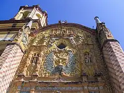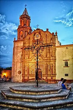 - 🌍 Misión Santiago de Jalpan (Santuario Del Santo Niño De la Mezclita Y Del Apóstol Santiago), Jardin Principal, Centro, Jalpan. First of the five missions, established in 1750. The ornate facade includes a portal piece decorated with images of Our Lady of the Pillar and the Virgin of Guadalupe, (both figures with strong Mesoamerican connections).