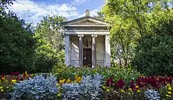 - 🌍 Ferenc Kazinczy Memorial Hall (Kazinczy Ferenc Emlékcsarnok), Kazinczy Ferenc utca 275, Széphalom, ☏ +36 47 521-236, info@nyelvmuzeum.hu. Apr–Oct: Tu–Su 09:00–17:00; Nov–Mar: 08:00–16:00. Built in 1873 in neo-Classicist style. Designed by Miklós Ybl on the site of the derelict Kazinczy Mansion. It contains an exhibition evoking the life of the writer, organiser of literary life and neologist. The building was made of the carved stone and imitates a Greek church. Opposite the Memorial Hall, Ferenc Kazinczy rests in his tomb. 400 Ft.