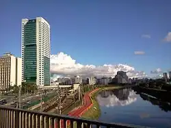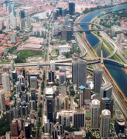 • 🌍 Brooklin Novo, Itaim Bibi (station Berrini, next to station Morumbi). Perhaps the most impressive business center of the city, Brooklin Novo is between Av. Eng. Luiz Carlos Berrini and the Pinheiros river. From here you can also see one of São Paulo's most famous landmarks, the bridge Ponte Octavio Frias de Oliveira, more known by locals as Ponte Estaiada (tip: the best view of the bridge is from Ponte do Morumbi). Not many restaurants in the streets, but you can eat at Shopping Nações Unidas (more like a food court than a shopping mall) or at the furniture shopping center D&D.