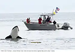 U.S. regulations require that boaters stay 200 yd (180 m) away from whales and keep the path of the whales clear.