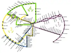 - Coast Starlight operates daily between Seattle and Los Angeles. Stops include Tacoma, Lacey, Centralia, Kelso, Vancouver, WA, Portland, Salem, Albany, Eugene, Klamath Falls, Dunsmuir, Redding, Chico, Sacramento, Davis, Martinez, San Francisco (Emeryville), Oakland, San Jose, Salinas, Paso Robles, San Luis Obispo, Santa Barbara, Oxnard, Simi Valley, Van Nuys, and Burbank. Northbound and southbound trains meet in San Luis Obispo at about 3:30PM each day. The Coast Starlight offers particular treats to travellers from both north and south. Those coming from San Francisco will penetrate the Santa Lucia range through the eight tunnels of the Cuesta Grade, the longest railroad grade west of the Rockies, just before disembarking at San Luis Osbispo. From Los Angeles, the route traverses the wild coastline of Vandenburg Air Force Base, which is otherwise inaccessible to civilians. During the winter, Coast Starlight travelers should enjoy great sunset views after departing San Luis Osbispo southbound.