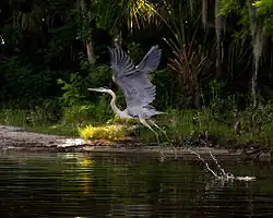 - 🌍 Lower Wekiva River Preserve State Park. An 18,000-acre (73-km²) Florida State Park on 6 miles (10 km) of the St. Johns River in Seminole County. The park forms a wildlife corridor to the Ocala National Forest along the Wekiva and St. Johns Rivers. Among the wildlife of the park are black bears, river otters, alligators, wood storks, and sandhill cranes. There are two sections to the park, north and south. The northern section's entrance is in Pine Lakes, off S.R. 44. This entrance leads to the multiuse trails, primitive horse camping and backpack camping areas. The entrance to the southern section, off S.R. 46 nine miles (14 km) west of Sanford, provides access to 5,000 acres (20 km²) of the park. There is no horseback riding in this part of the park. Neither section provides water access. Although canoeists can travel the Wekiva River through the park, they must launch from outside.