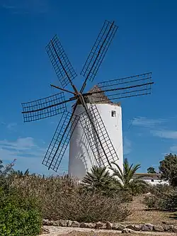 - 🌍 Sa Punta des Molí (across the bay of Passeig de ses Fonts). A headland declared as a Cultural Interest Heritage – a restored piece of the typical old Ibiza with mill, a couple of old houses, a dock, an olive-oil press, plus a bit of a botanical garden, etc.
